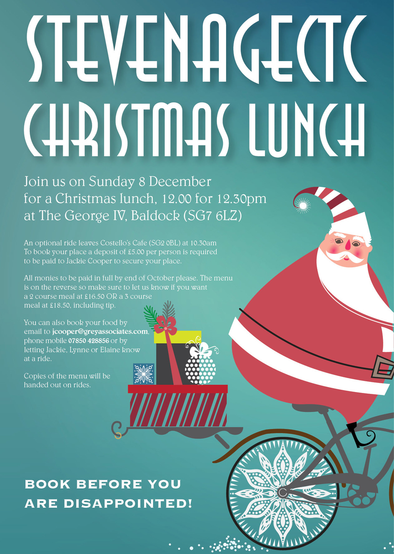 Layout for a cycling club xmas dinner.