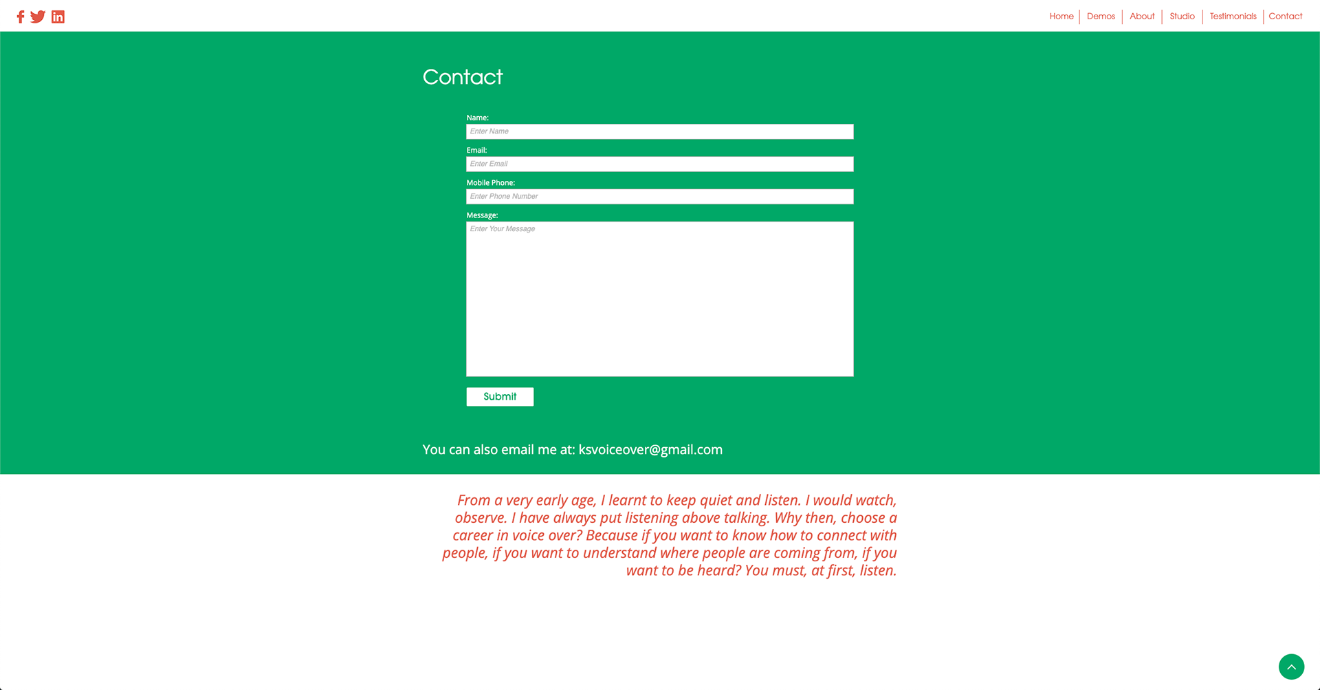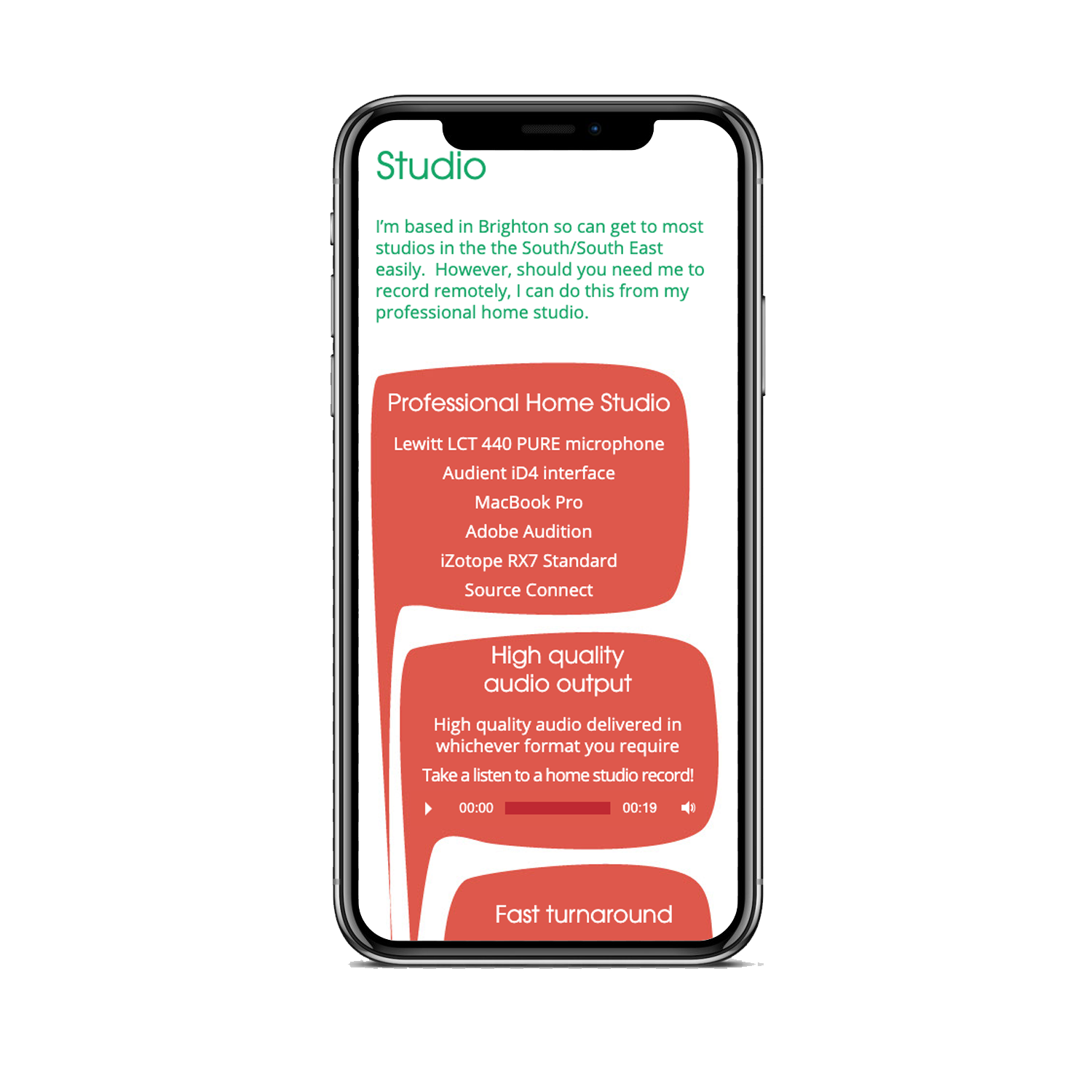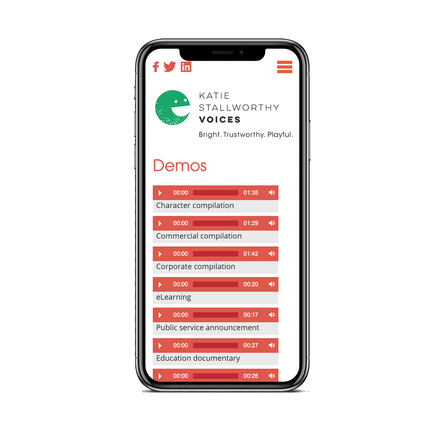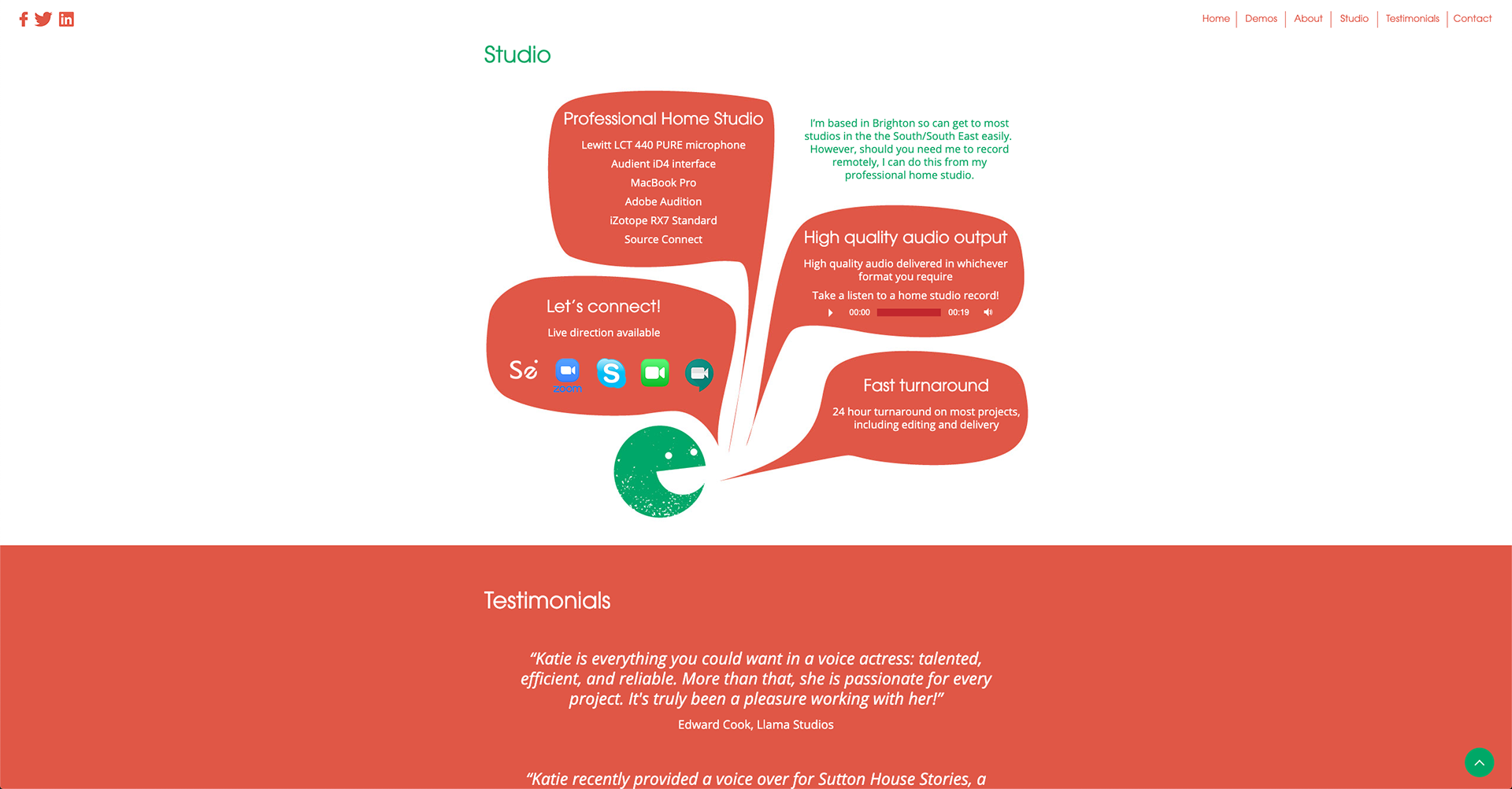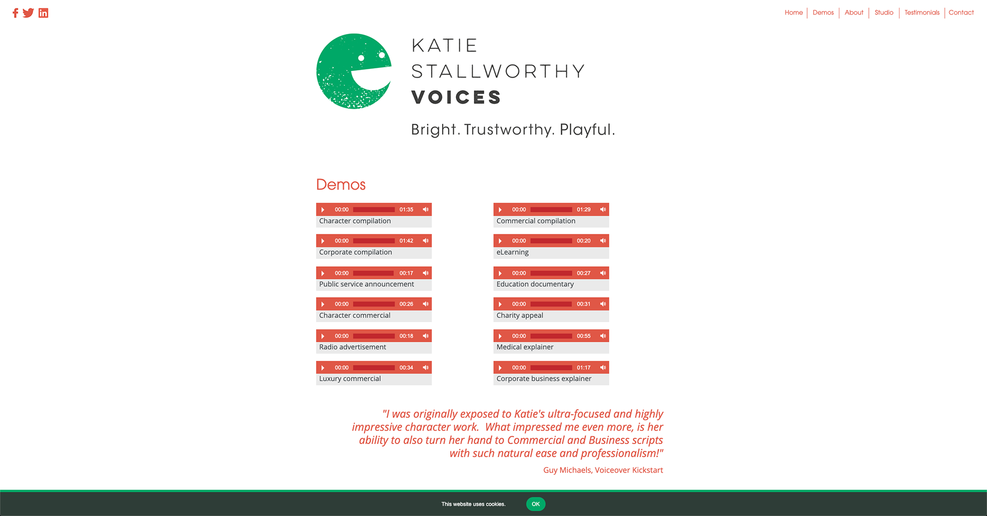 Initially a branding exercise with an animated logo identity, this escalated into creating a simple, single web page to promote Katie's solo voice over work. Layout created for Katie Stallworthy Voices, Brighton